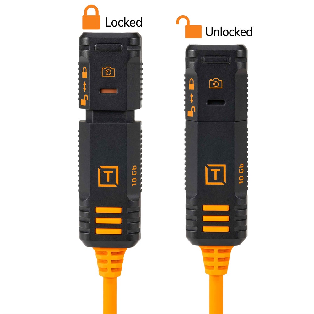 - SecureLock-system – Specialutvecklat av Tether Tools för professionella arbetsflöden; låser kabeln säkert för stabil och trygg tethering på location