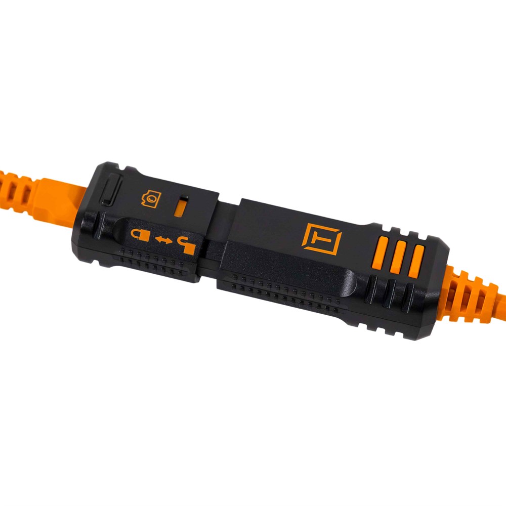 TetherPro Optima 10G TetherBoost USB-C Förlängningskabel med låsbar kontakt, längd 4,8 m och tydlig orange färg på kabelhöljet. Överför bilder snabbare, på långt avstånd och med maximal tillförlitlighet med TetherPro Optima 10G USB-C TetherBoost låsbar förlängningskabel. Kabeln är utrustad med Tether Tools innovativa SecureLock-system och integrerad TetherBoost Pro-teknik. Den låser säkert mot alla TetherPro Optima Tether-kablar och bibehåller supersnabb dataöverföring på 10 Gbps – samtidigt som oavsiktliga urkopplingar förhindras. Utvecklad för professionella användare som kräver pålitlig prestanda över längre avstånd. Kan kombineras med Optima-kablar i längderna 50 cm, 90 cm, 1,8 m, 3 m, 4,5 m eller 9,4 m för att skapa exakt rätt kabellängd.