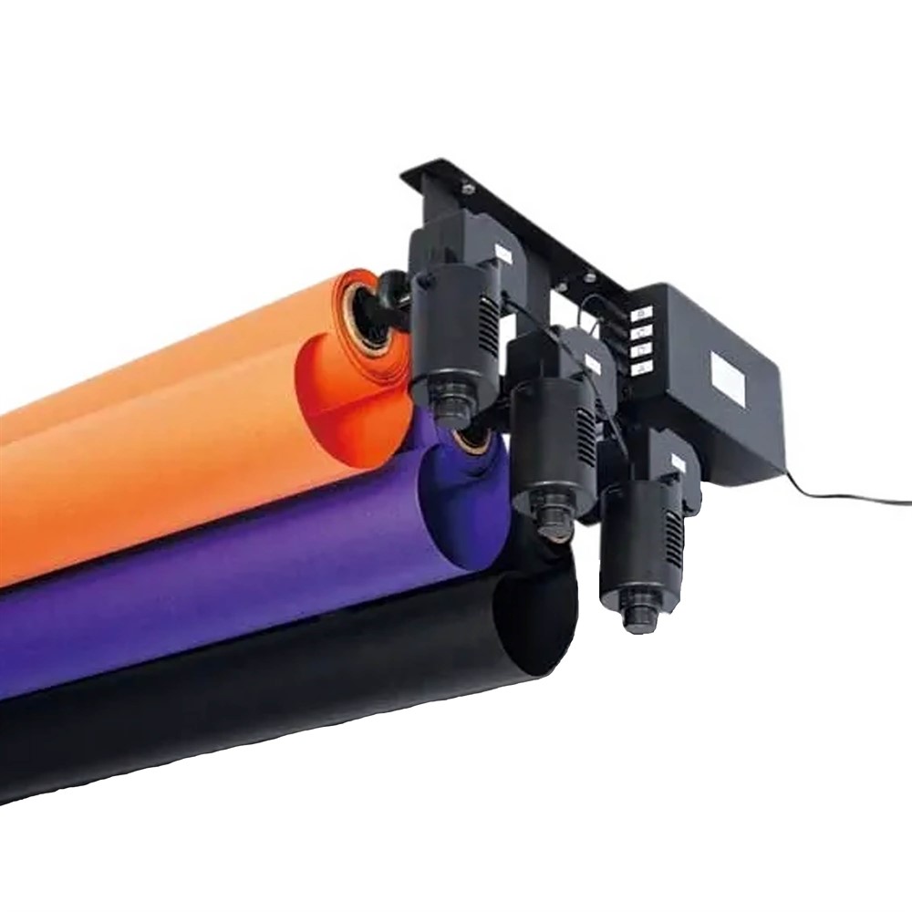 This kit is designed to operate and control up to three backdrop rolls simultaneously – perfect for portrait photography, product photography, video production, and more.