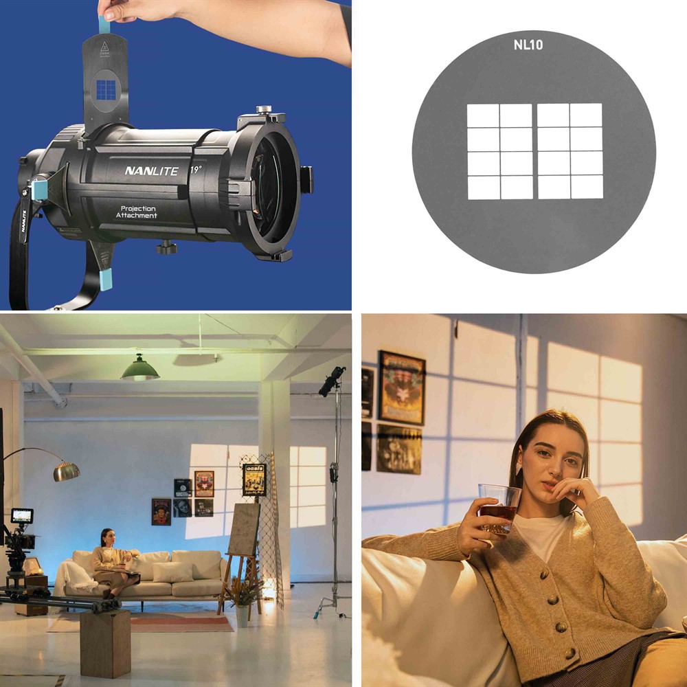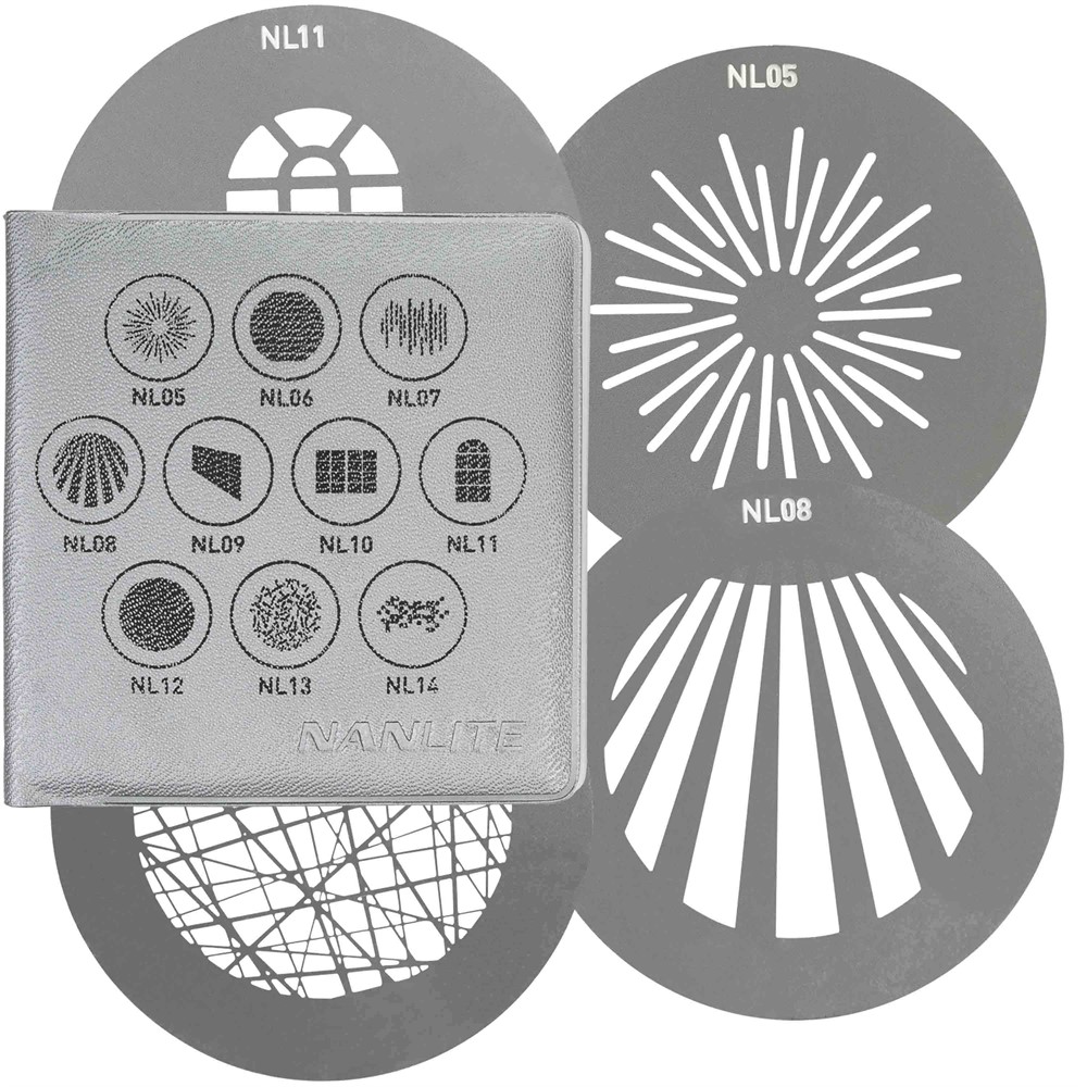 This set of gobos works perfectly with the Nanlite PJ-FMM Bowens Projection Attachment
