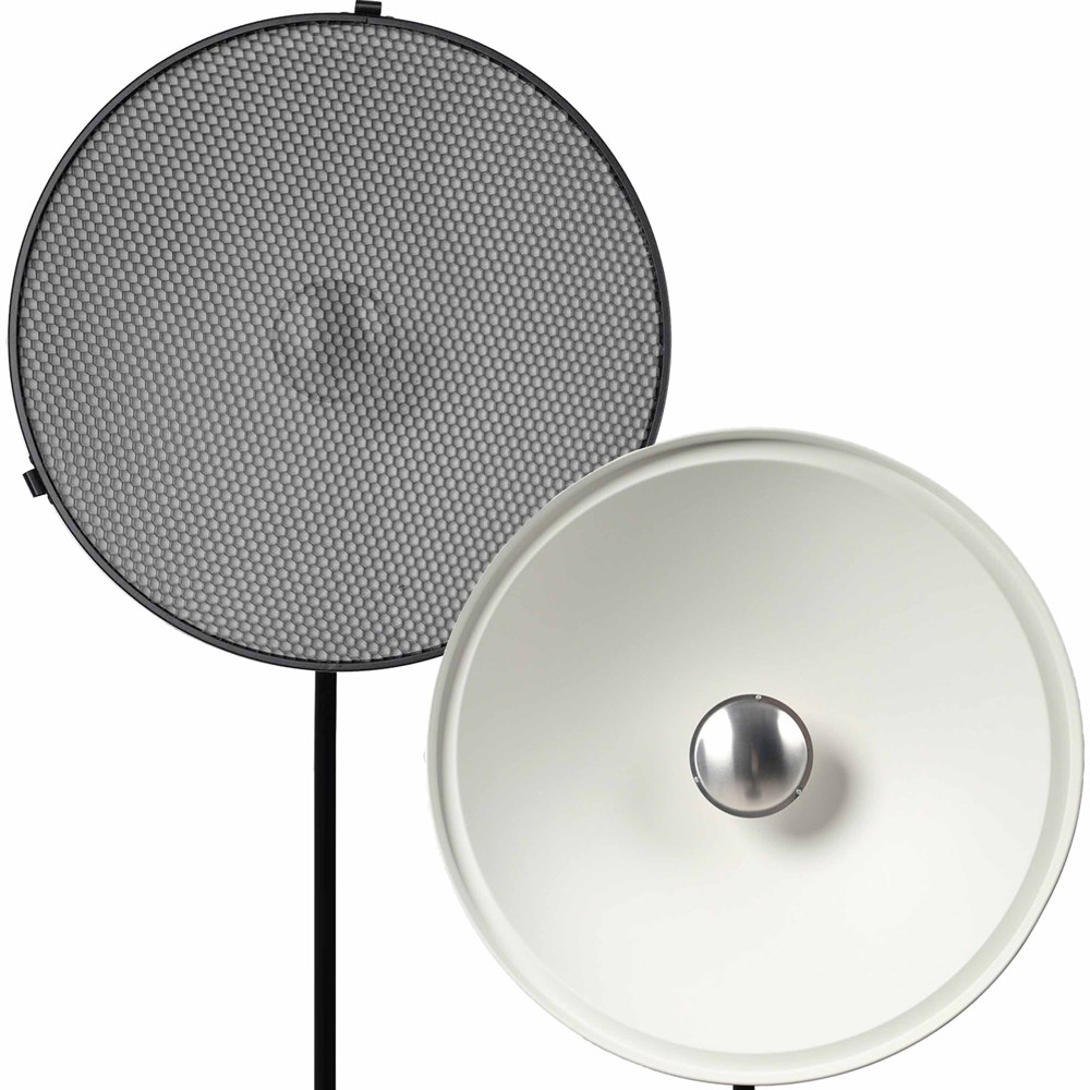 The inside of the beauty dish is white with an orange-peel texture, ensuring even light reflection on the subject.