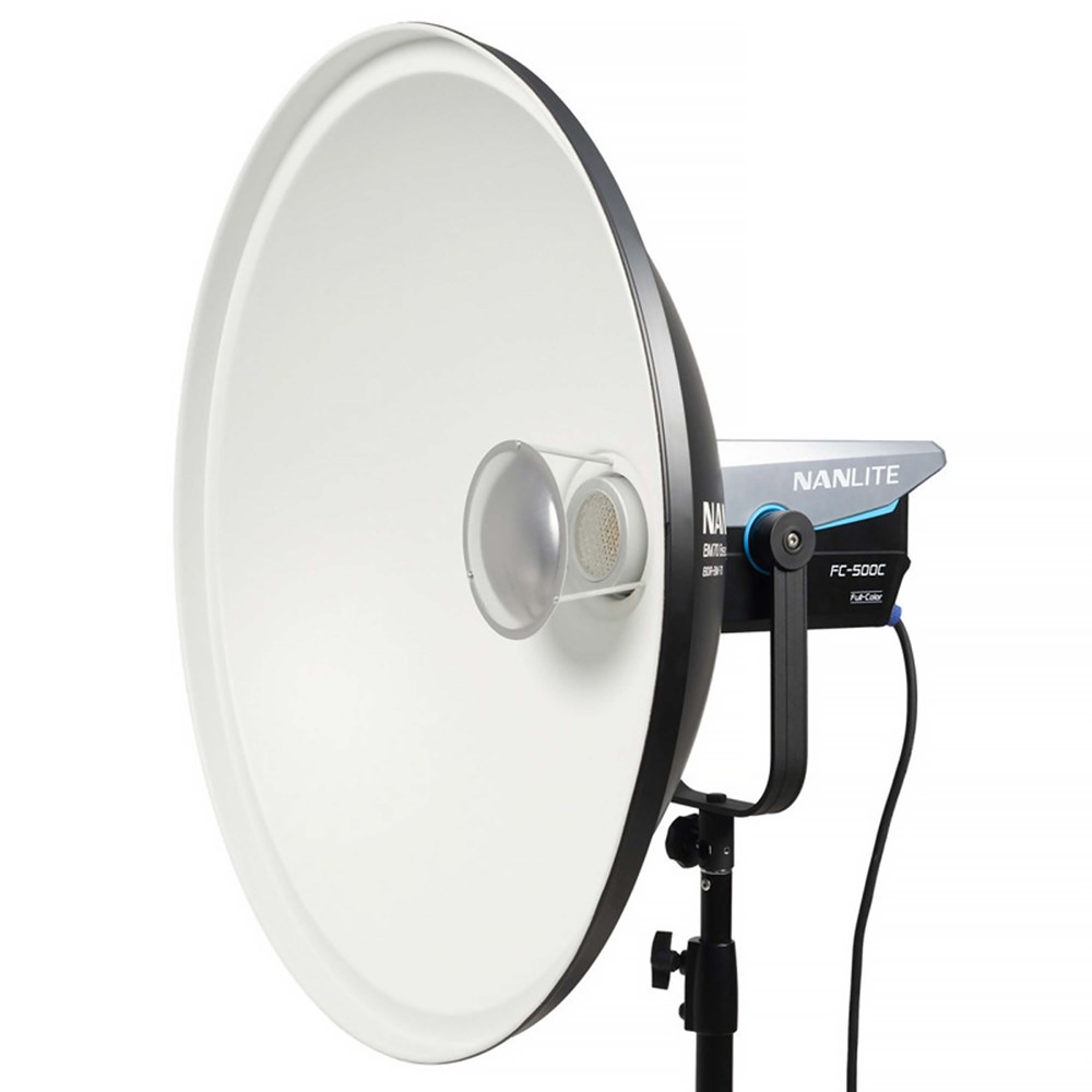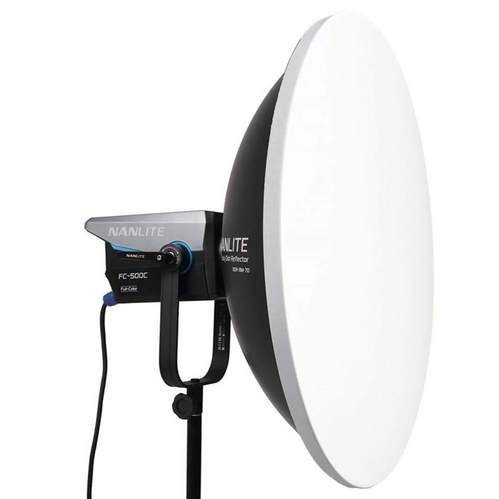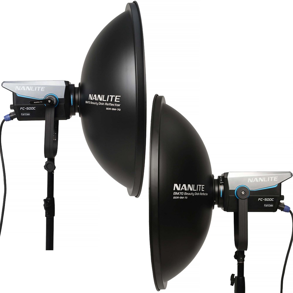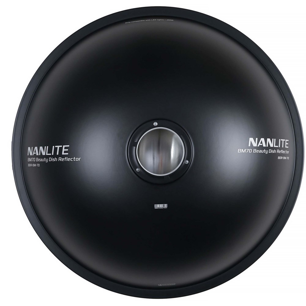 The Nanlite Beauty Dish Reflector BM70 is a specially designed light modifier that provides beautiful, soft light with a unique sharpness – perfect for portrait and fashion photography. The reflector features a durable metal construction and a 70 cm diameter, offering a wider light spread than the Beauty Dish 40 cm. A standard Bowens mount ensures broad compatibility with various LED lights and studio strobes. The kit includes a honeycomb grid and a diffusion fabric.