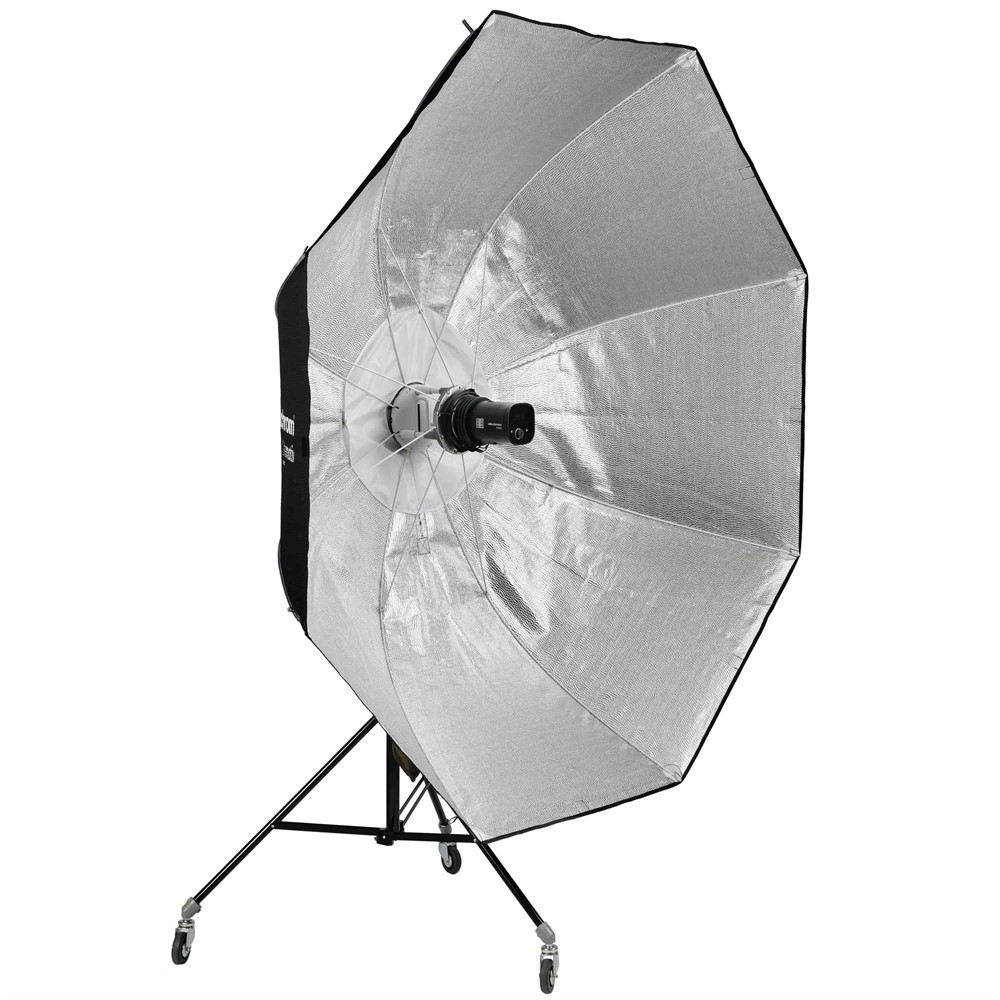 I Litemotiv Octa 190 cm sitter en ny typ av reflekterande tyg som ger en mycket hög ljusstyrka. Det innebär att Litemotiv kan drivas av de flesta studioblixtar. Kombinationen med högreflekterande tyg inuti softboxen och högkvalitativ diffusorduk ger Litemotiv Octa dess unika ljusflöde.