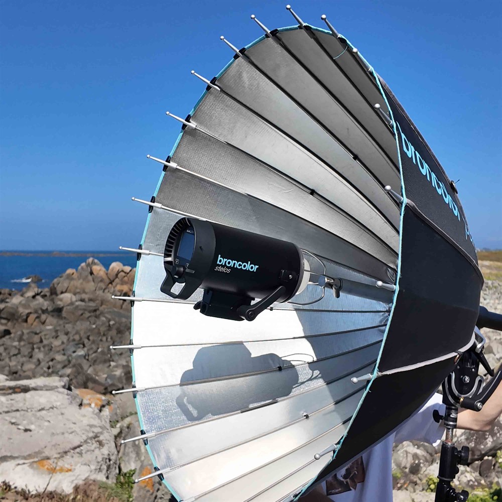 Med vidvinkelparaplyreflektor Ø120 mm: f/22 3/10