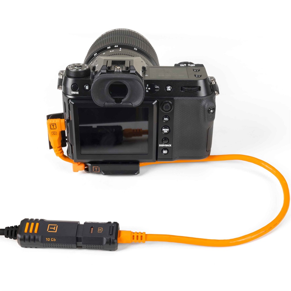- SecureLock-system – Specialutvecklat av Tether Tools för professionella arbetsflöden; låser kabeln säkert för stabil och trygg tethering på location